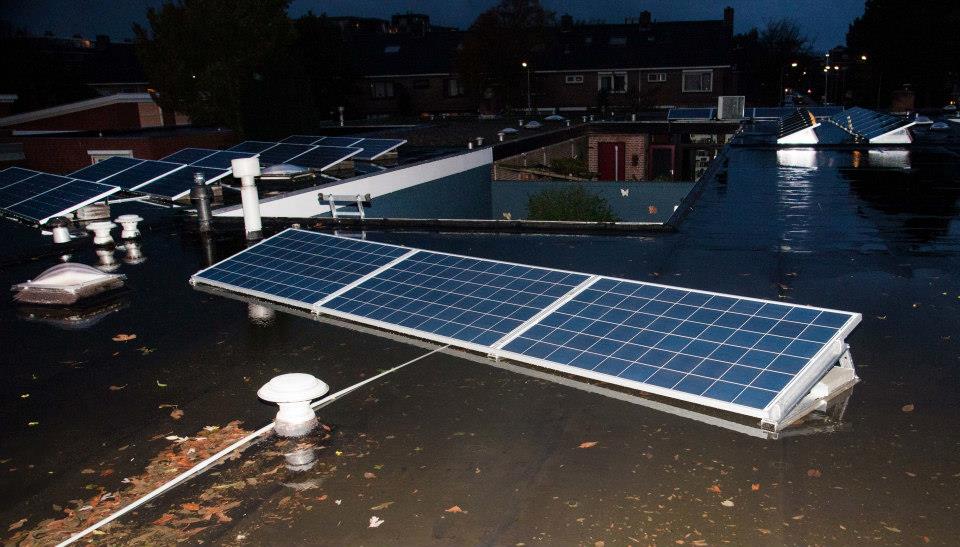 De zonnepanelen hebben windkracht 11 doorstaan zonder een millimeter op te schuiven.